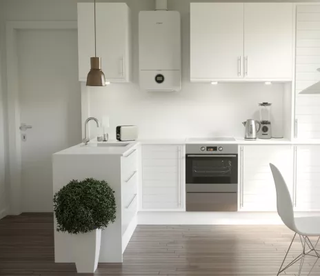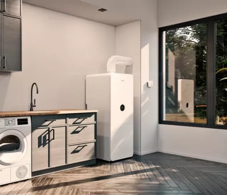Wandhängende Gas-Brennwertgeräte sparen Platz und überzeugen durch höchste Effizienz bei der Verbrennung.